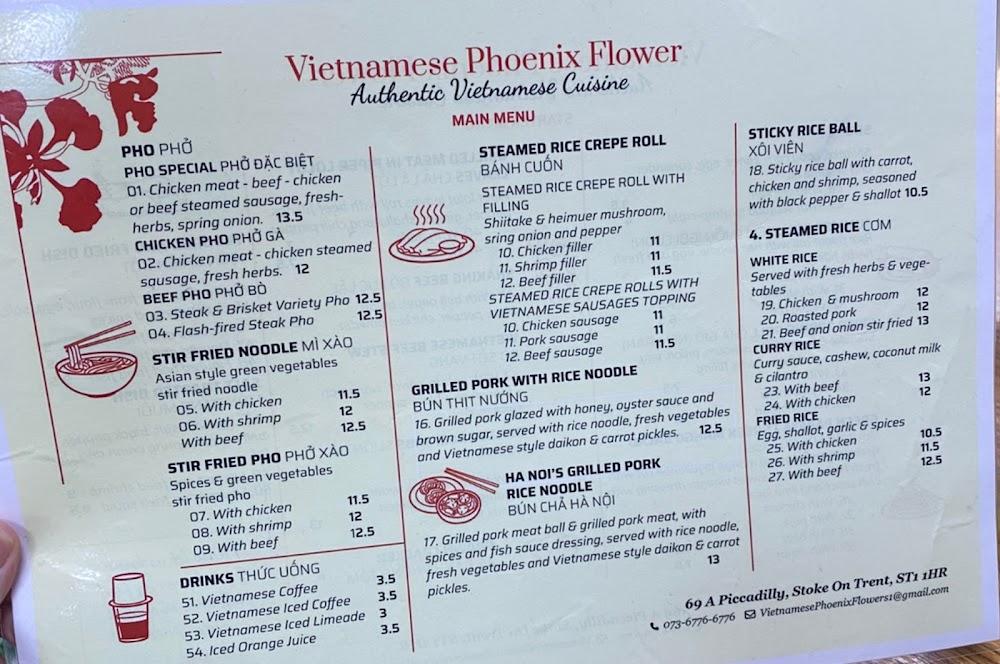 Located at 69A Piccadilly, Hanley, Stoke-on-Trent, Vietnamese Phoenix Flowers provides an inviting space to experience authentic Vietnamese cuisine. The city itself is known for its rich ceramic heritage, and you'll find this restaurant a gem amidst the hustle and bustle of Hanley. The eatery's cozy atmosphere suits both casual meals and special occasions. With the charm of its décor reflecting Vietnamese culture, the restaurant promises a genuine culinary journey. Visitors range from locals to tourists exploring the area, creating a lively and welcoming vibe. Parking options include free street parking and paid lots, making it easily accessible.